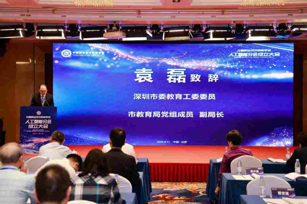 袁磊在致辞中表示,在人工智能重塑全球经济格局的背景下,人工智能分会的成立标志着学会正主动拥抱新技术、服务国家战略布局。深圳聚集了华为、腾讯等领军企业和深圳职业技术大学等高水平职业院校,既是人工智能产业发展的排头兵,又是职业教育发展的高地。深圳市教育局将全力支持人工智能分会工作,汇聚优质资源,促进人工智能领域教育链、人才链、产业链、创新链有机衔接,积极赋能新质生产力发展。