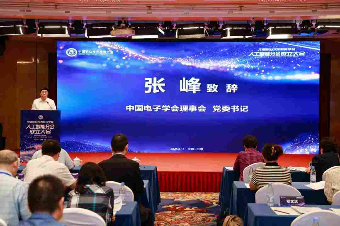 张峰在致辞中表示,学会人工智能分会的成立是落实国家“人工智能+”行动的关键举措,对培养人工智能领域紧缺人才具有重要意义。当前人工智能产业发展面临人才短缺挑战,需要职业教育精准对接制造强国战略需求。中国电子学会正推进具身智能产业人才培养体系建设,今后将加强与学会的合作,共同推动人工智能技术发展,为发展新质生产力和促进新型工业化提供人才支撑。