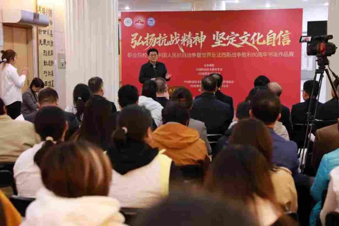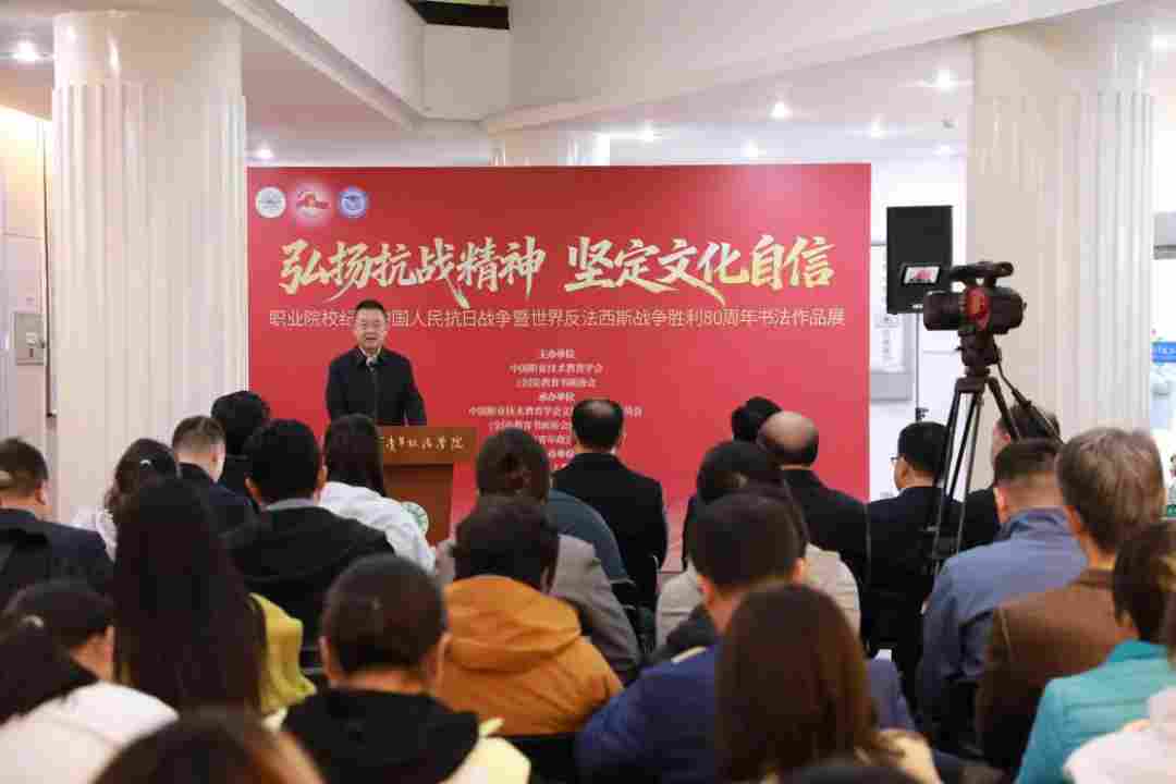 11月14日,职业院校纪念中国人民抗日战争暨世界反法西斯战争胜利80周年书法作品展在北京青年政治学院举行。举办本次展览是贯彻落实党的二十大四中全会精神,践行立德树人根本任务的重要举措。本次书法展以“弘扬抗战精神·坚定文化自信”为主题,从征集的全国职业院校师生254幅作品中,遴选出80幅兼具思想深度与艺术水准的优秀作品作集中展示,以笔墨传承红色基因,厚植文化自信根基,为培养德技并修的高素质技术技能人才提供坚实文化支撑。