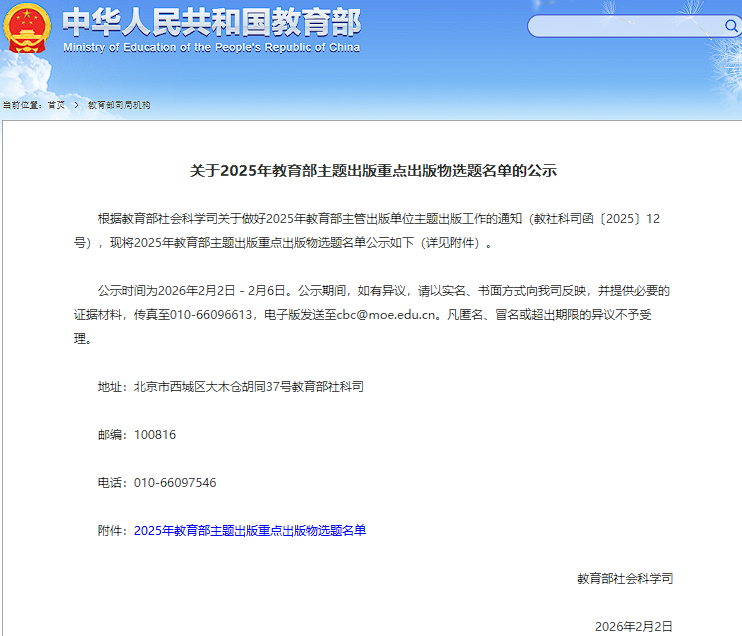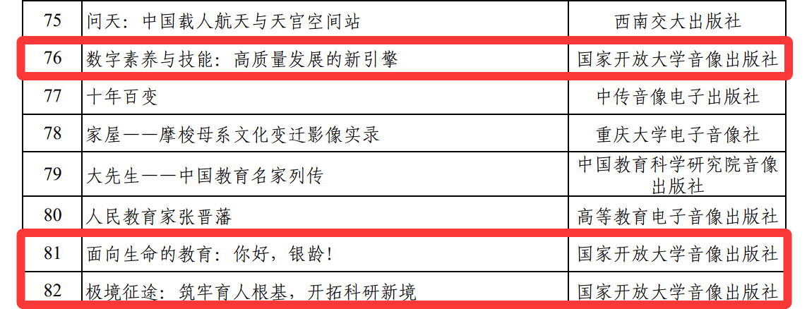 近日,教育部社会科学司公示2025年教育部主题出版重点出版物选题名单,国家开放大学与中国科学院学部工作局、中国工程院战略咨询中心联合策划的“院士讲堂”项目3项选题入选。入选选题系列资源由国家开放大学立项建设,国家开放大学音像出版社制作出版。
