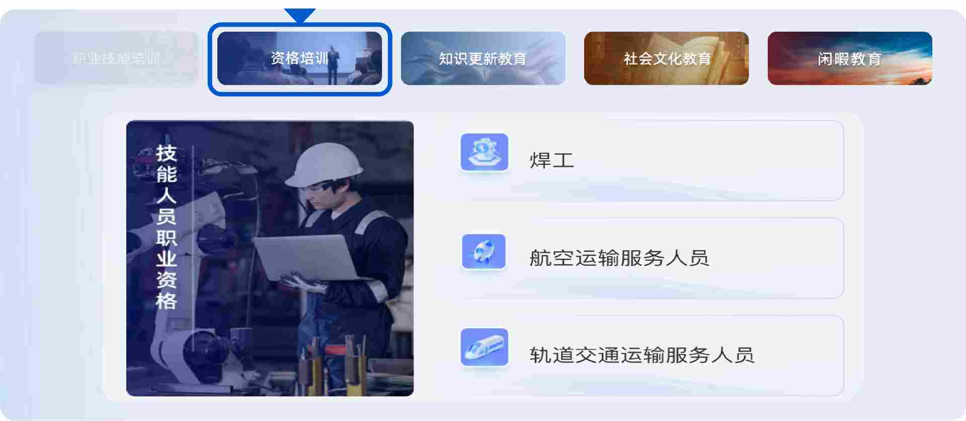 面向行业执业资格需求,整合岗位对应的资格培训类课程。