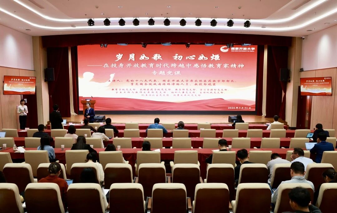 为深入学习贯彻习近平总书记关于教育的重要论述,大力弘扬教育家精神,助力教师落实立德树人根本任务,3月31日,国家开放大学学生工作与教师发展部党支部联合校内八个党支部,共同开展“岁月如歌 初心如炬——在投身开放教育时代跨越中感悟教育家精神”专题党课。党的十八大代表,享受国务院政府特殊津贴专家,教育部直属机关“巾帼建功先进个人”、国家开放大学原农林医药教学部部长郭晓霞教授作专题报告。学生工作与教师发展部党支部书记、副部长赵婷婷主持活动。
