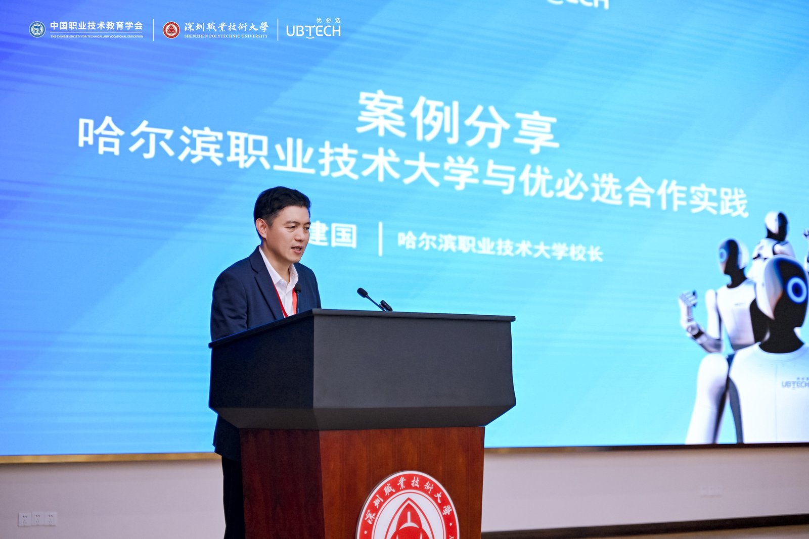 哈尔滨职业技术大学校长刘建国就学校与优必选科技协同育人情况分享了经验,为首批建设单位开展工作提供了实践参考。